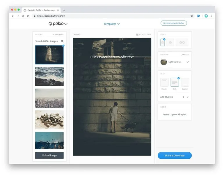 Developed by the team at Buffer, Pablo aims to help you create engaging images for your social media accounts.