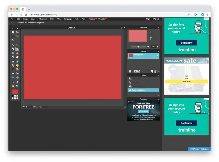 You’ll want to keep in mind that Pixlr does not have ready-made templates to get you started, so it helps to have a background in design to get the most out of this tool.