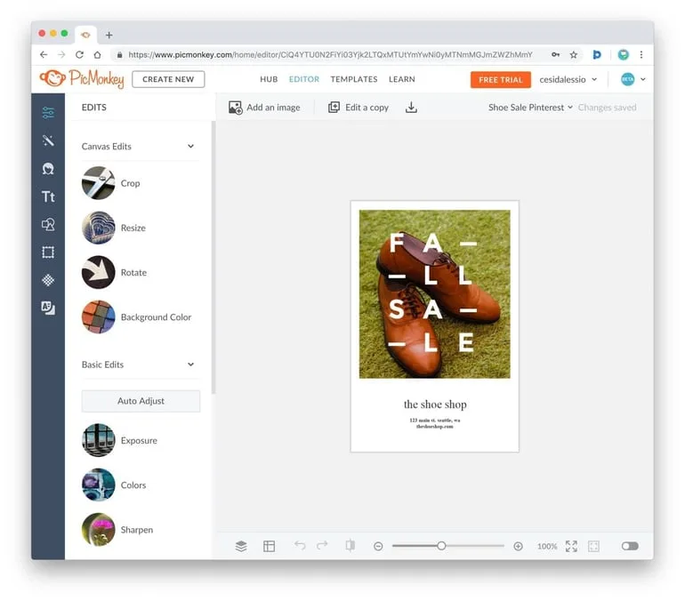 Once you have an account with PicMonkey, you get access to your own hub to organize your templates, plan your graphics and find inspiration. PicMonkey is one of the closest experiences to Canva, allowing basic editing of graphics for social media images too.